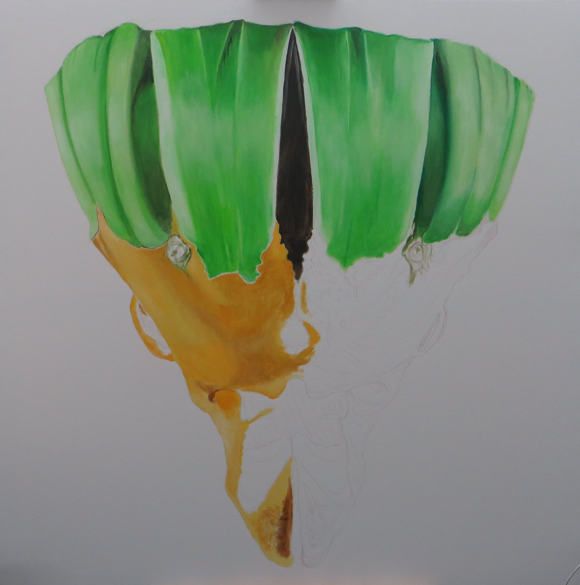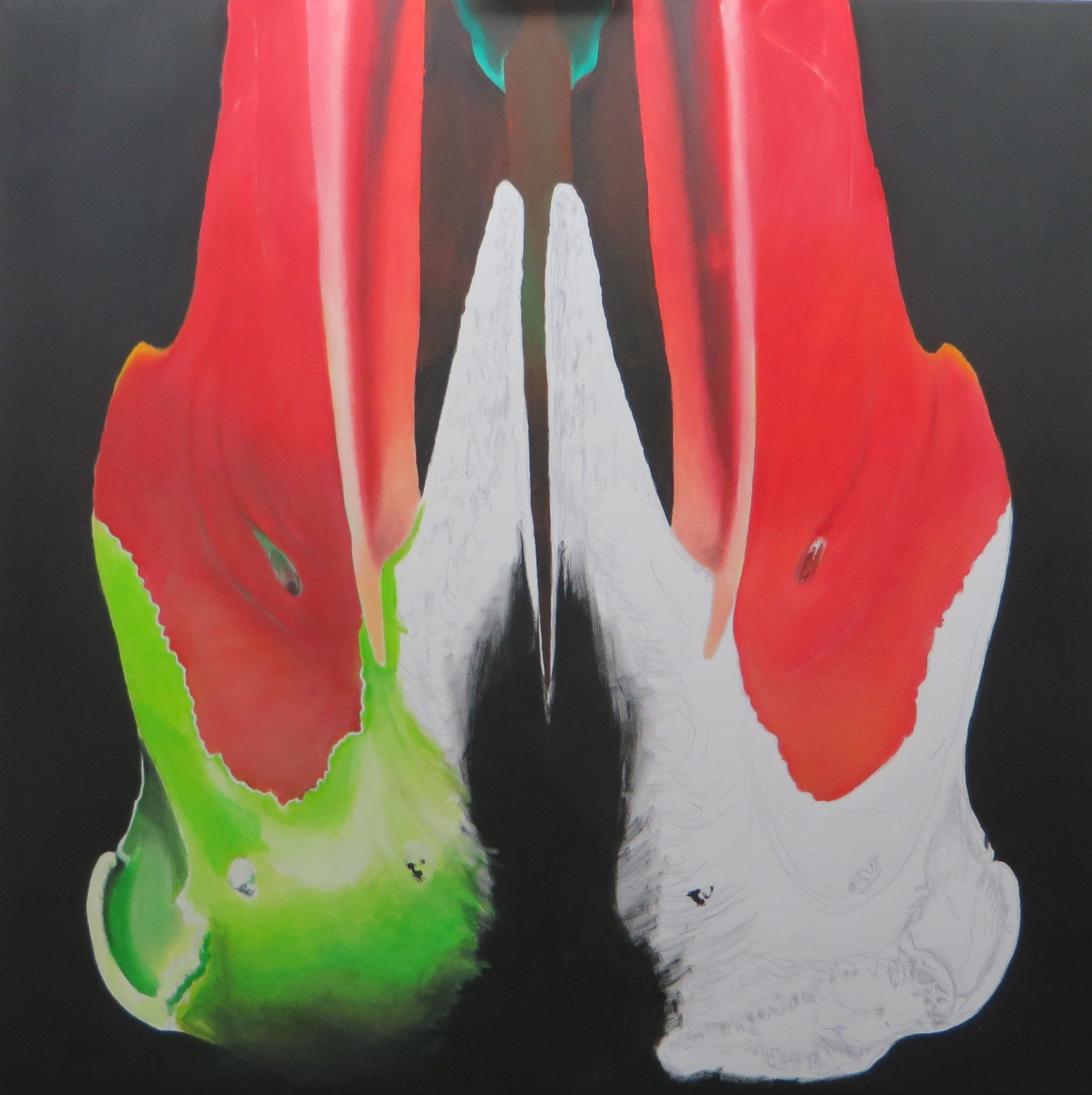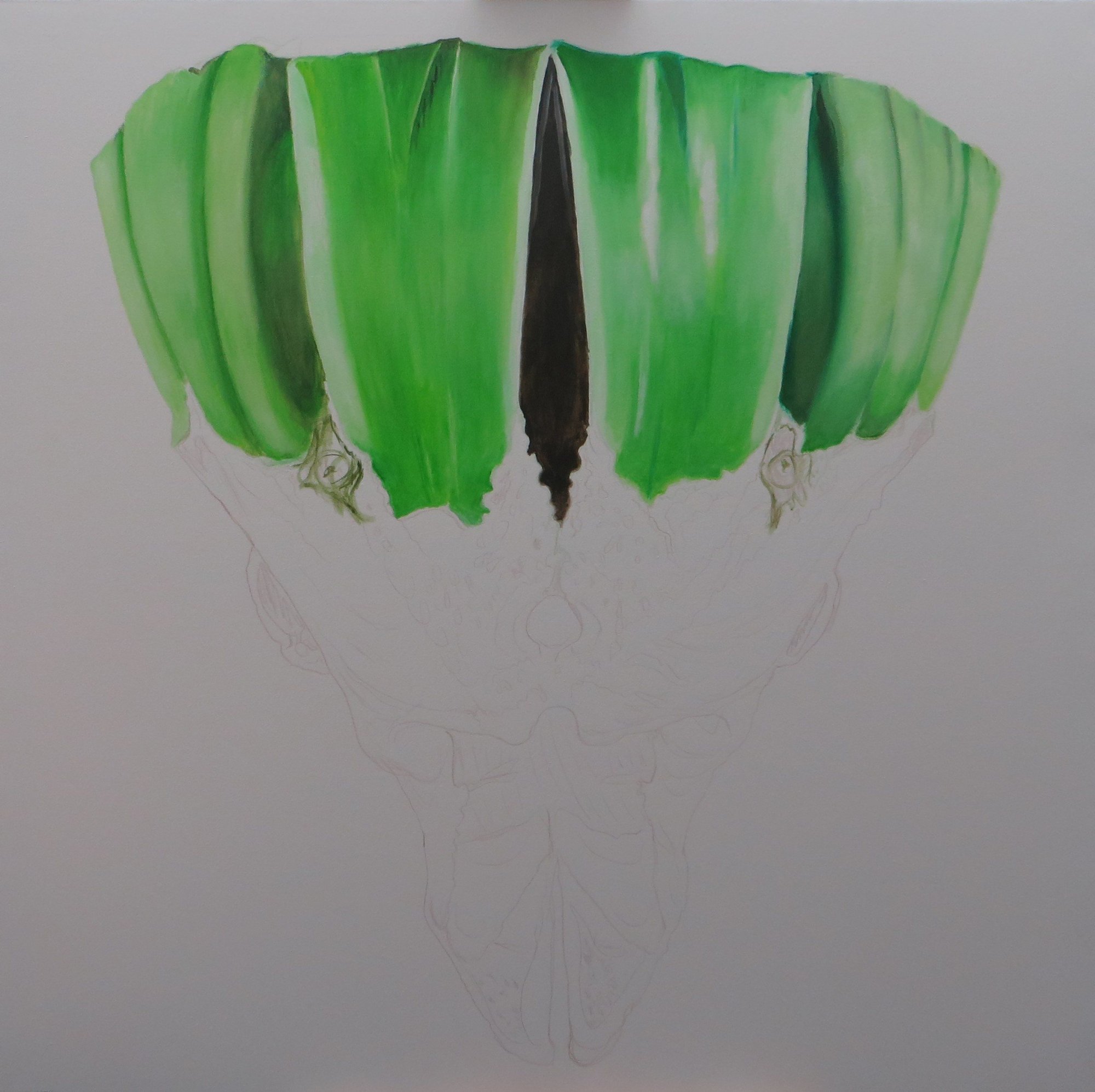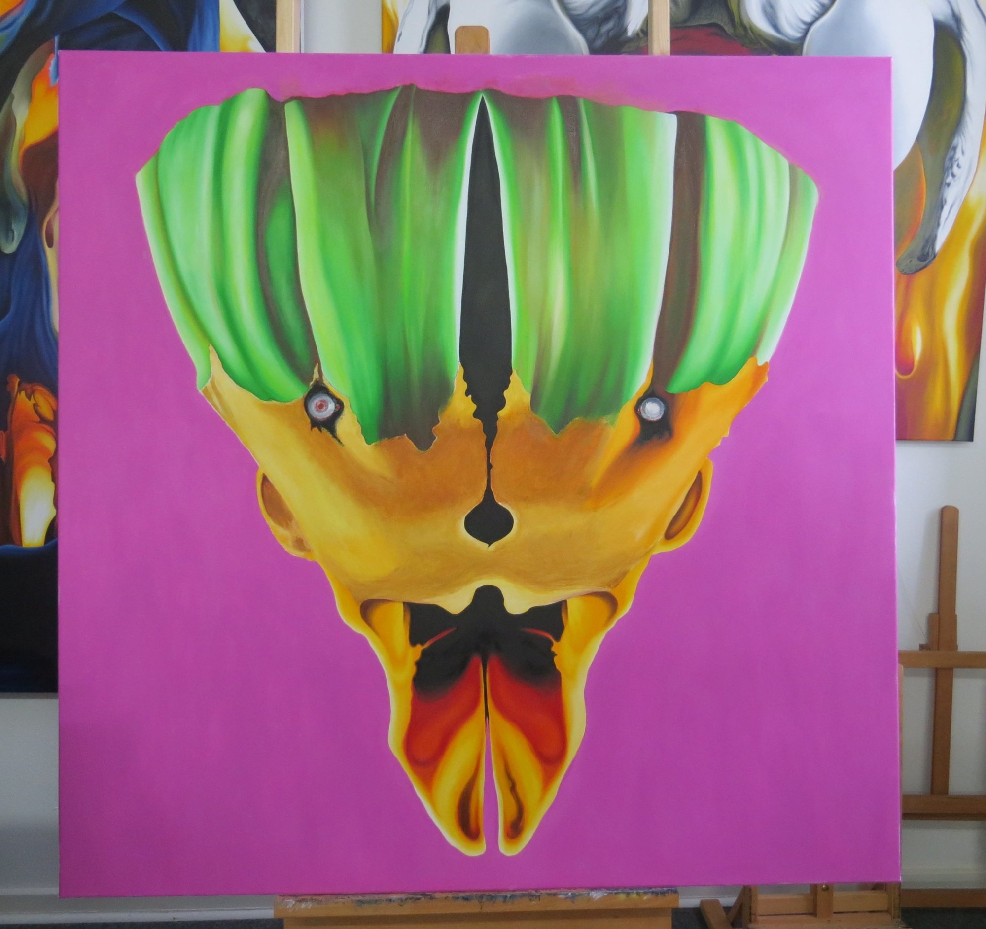 In Arbeit: Schädellandschaft „Rhabarber“, 2025/26, Öl auf Leinwand, 120 x 120 cm
