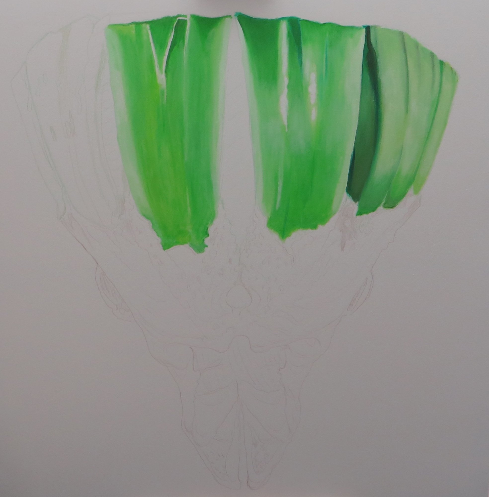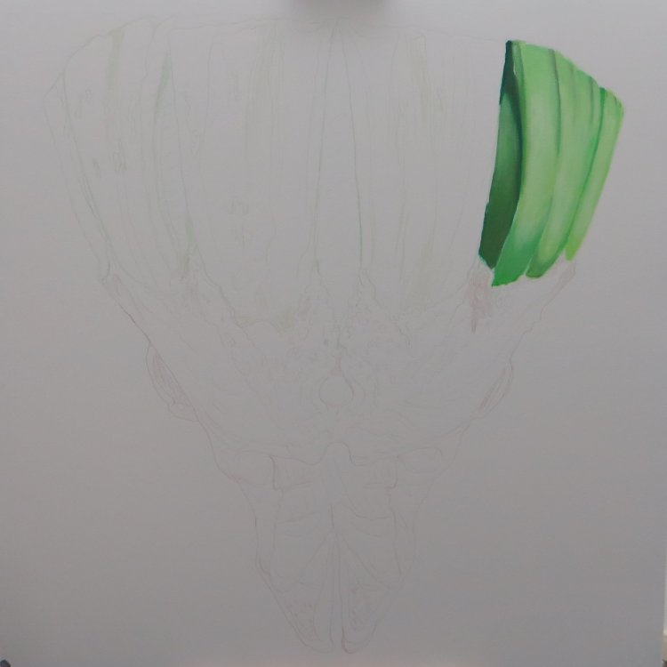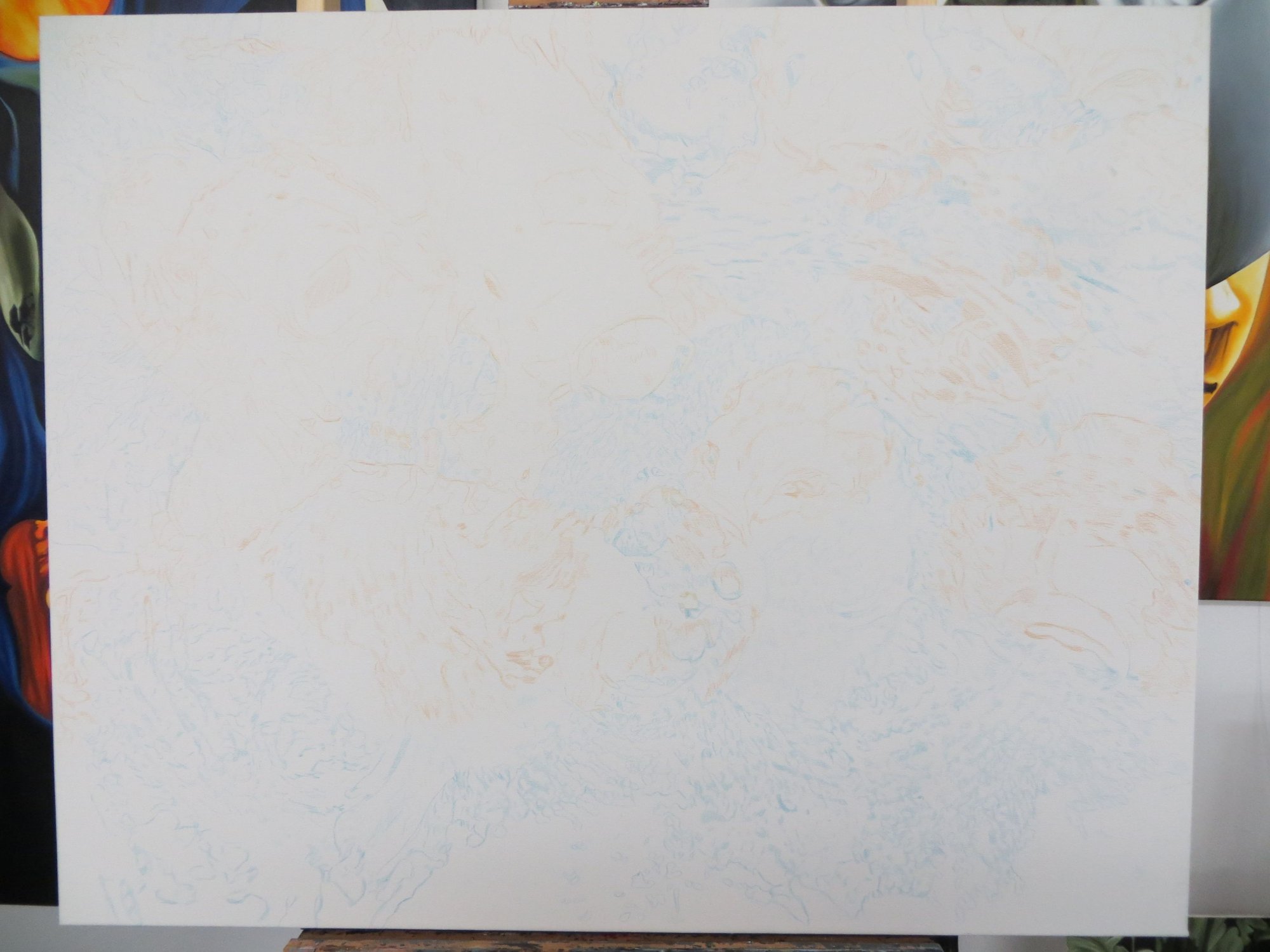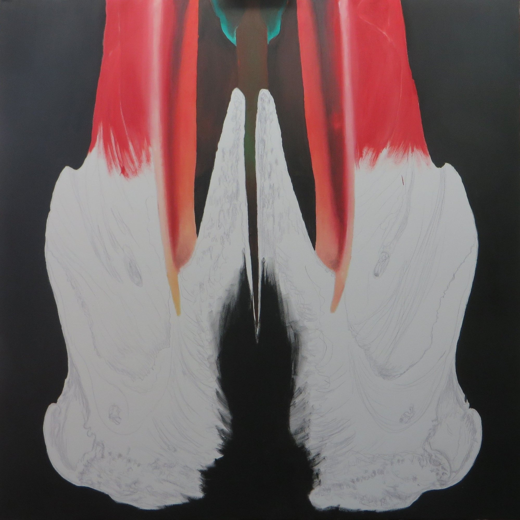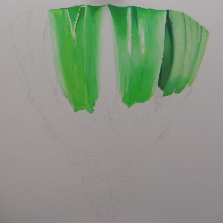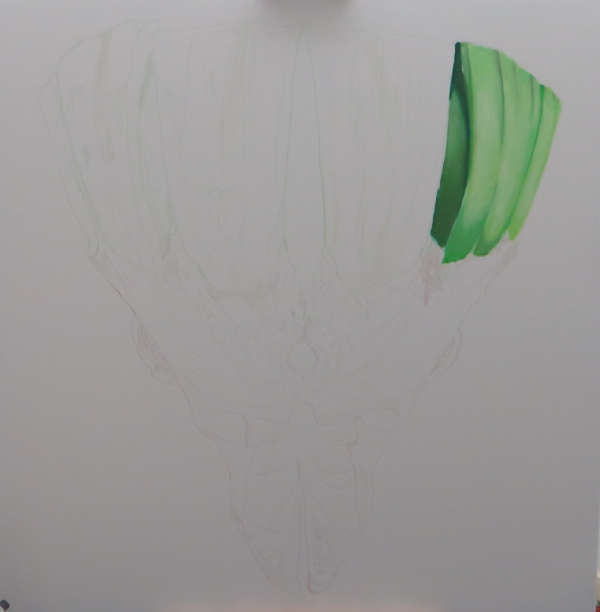 In Arbeit: Schädellandschaft „Rhabarber“, 2025/26, Öl auf Leinwand, 120 x 120 cm
