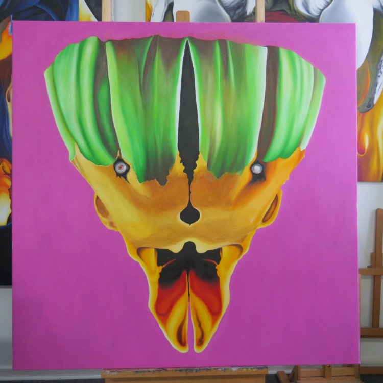 Vollendet: Schädellandschaft „Nofretete“, 13.02.2026; Öl auf Leinwand, 120 x 120 cm