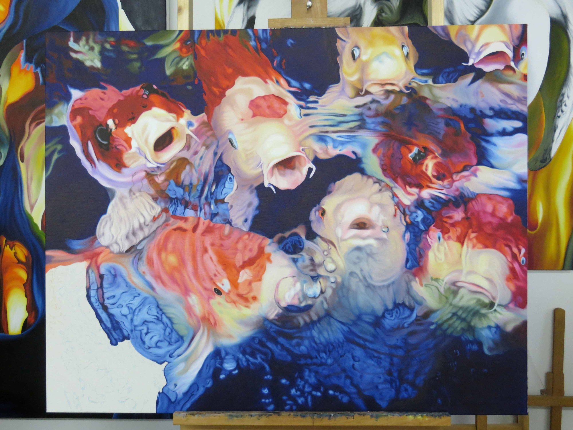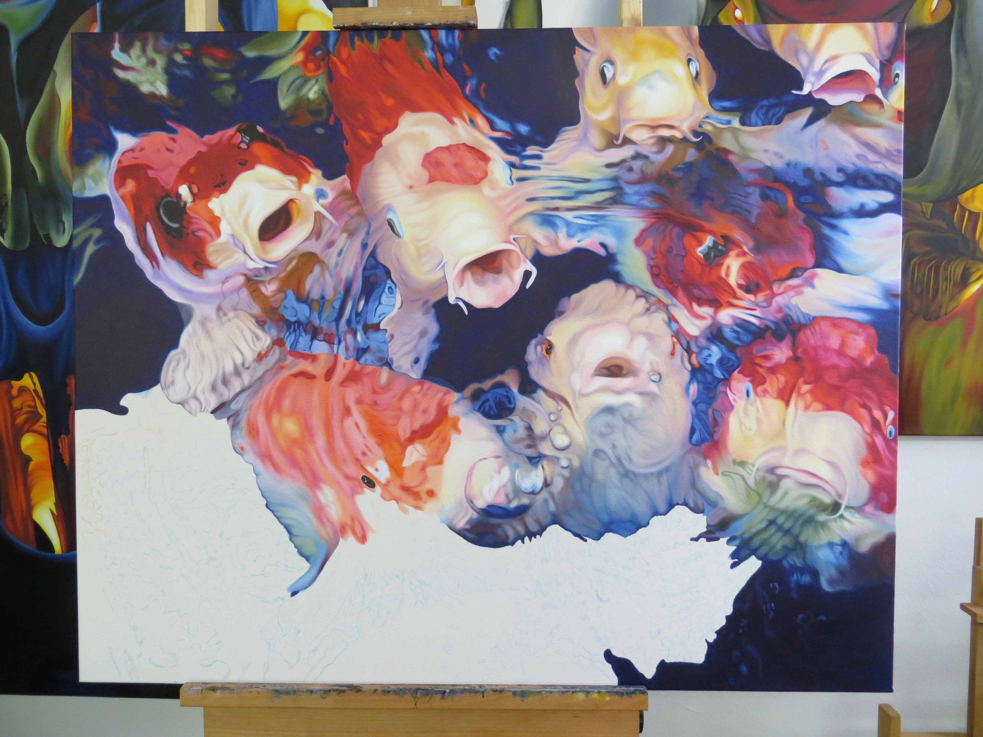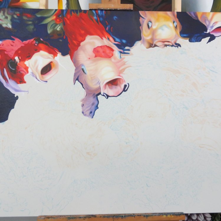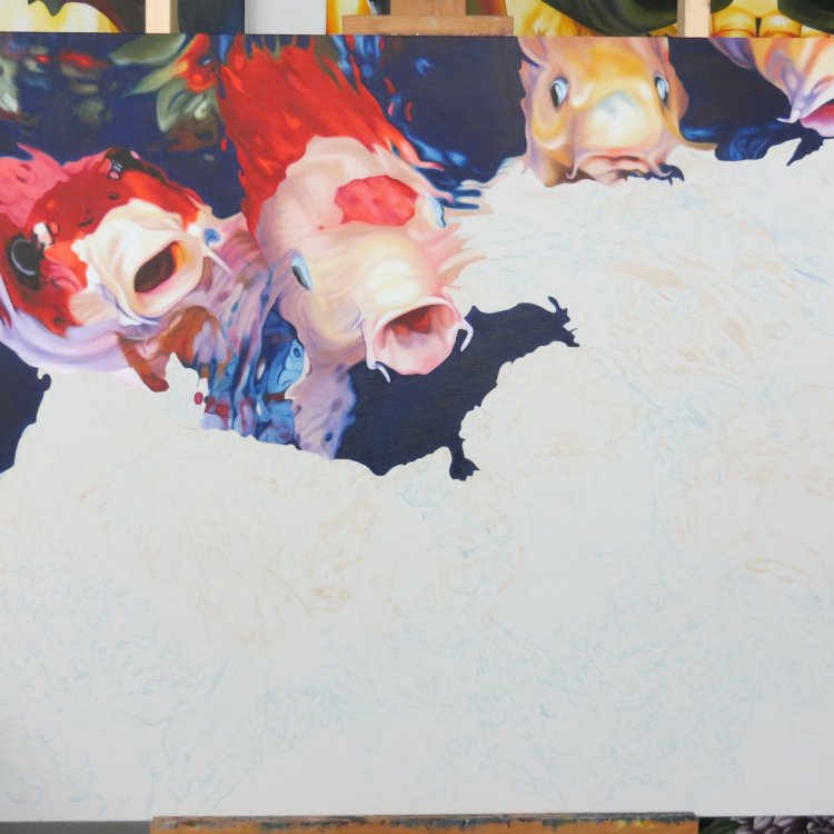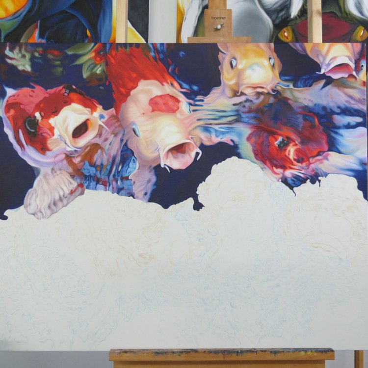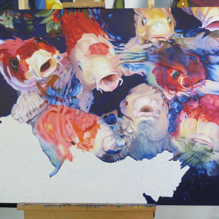 Frisch vom Pinsel: Koi #1, 2025, Öl auf Leinwand; H 80 x B 100 cm