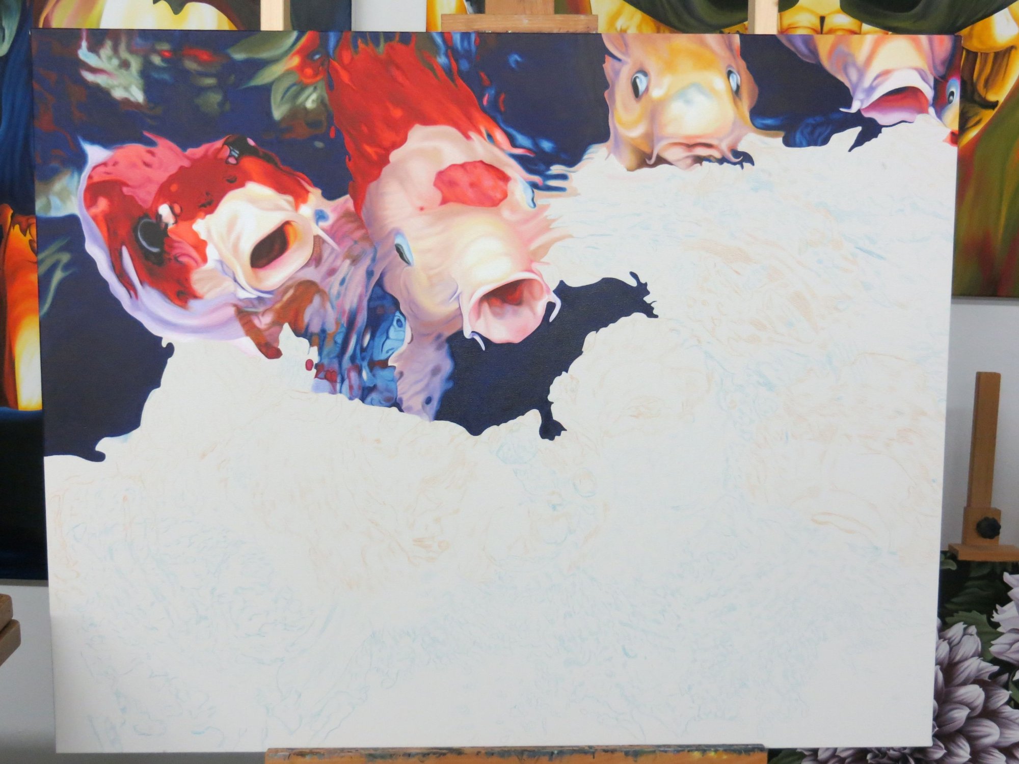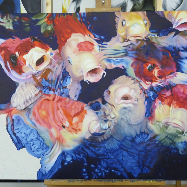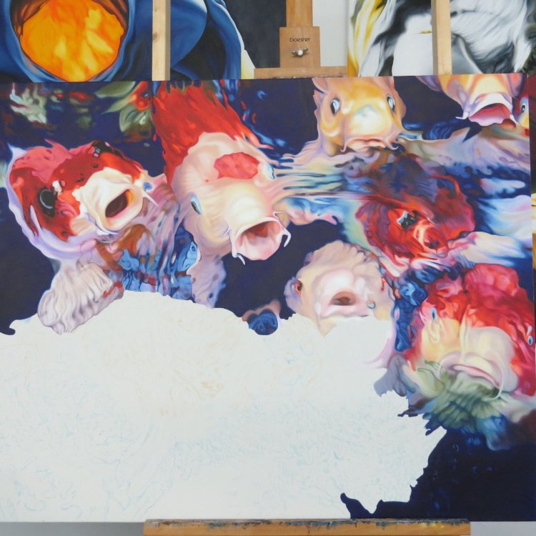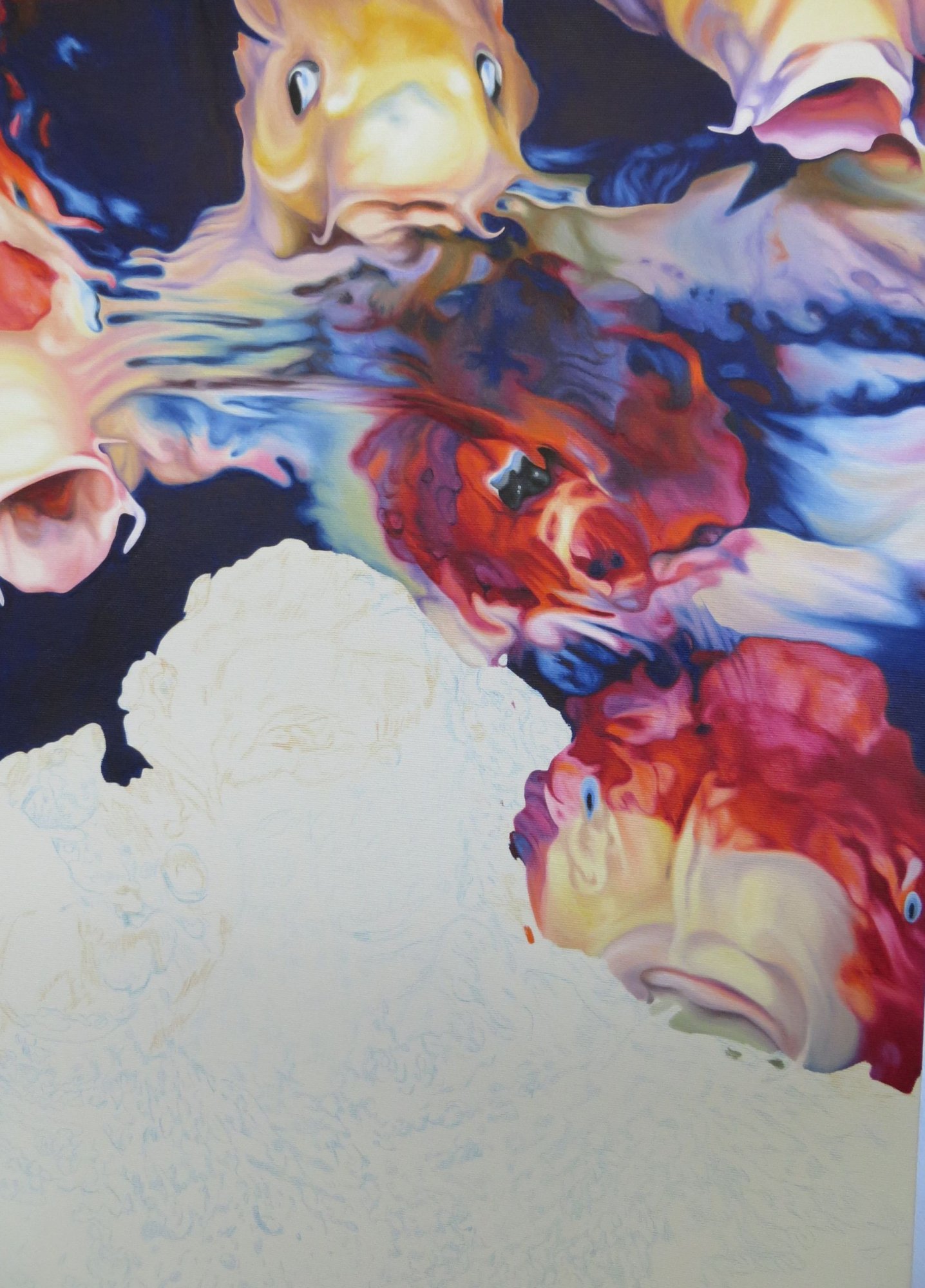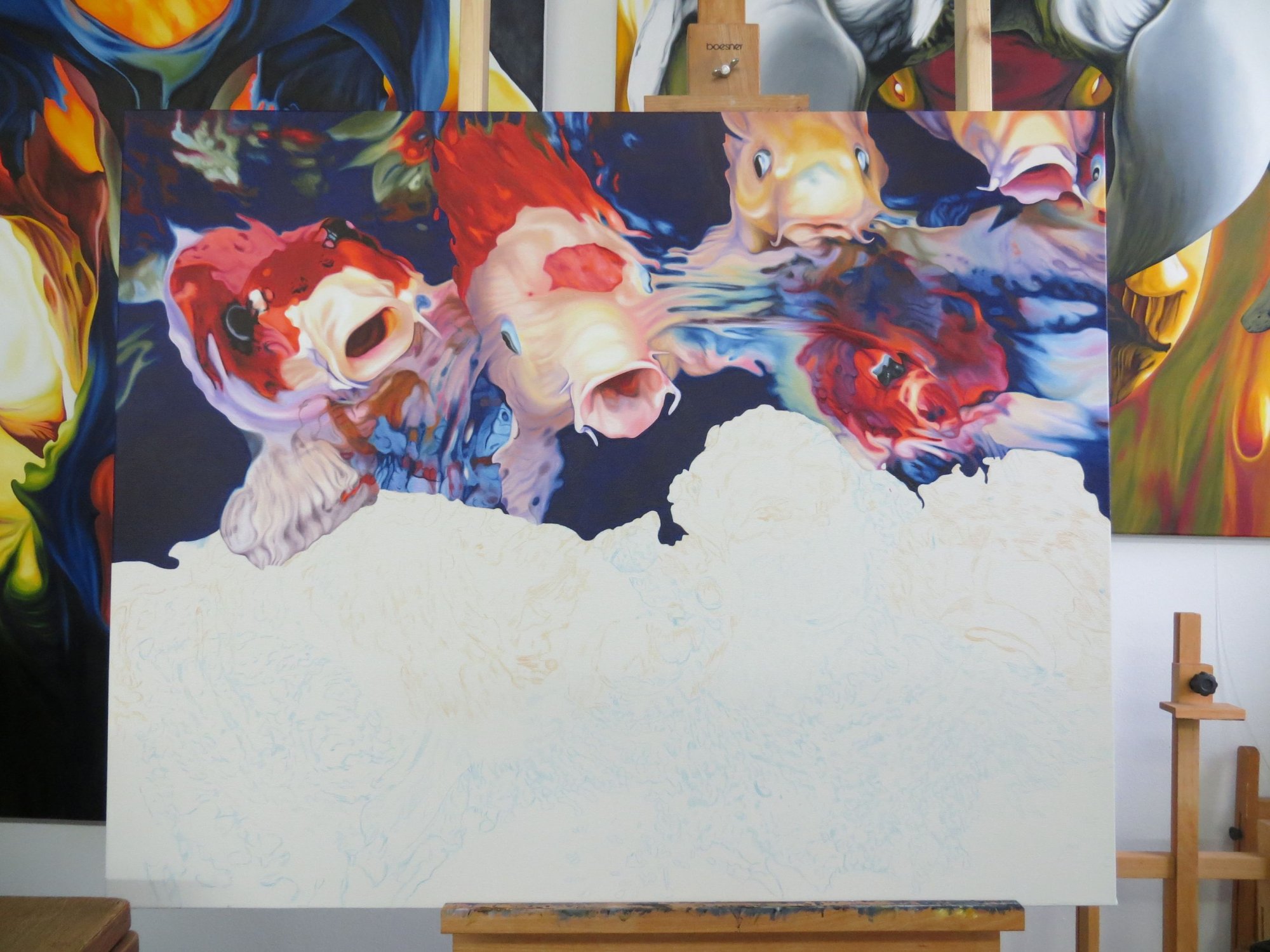 Frisch vom Pinsel: Koi #1, 2025, Öl auf Leinwand; H 80 x B 100 cm