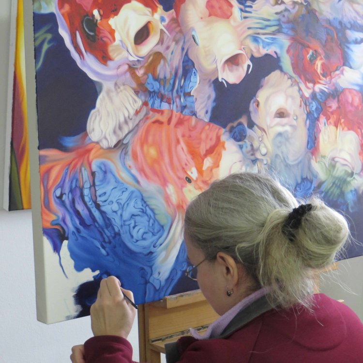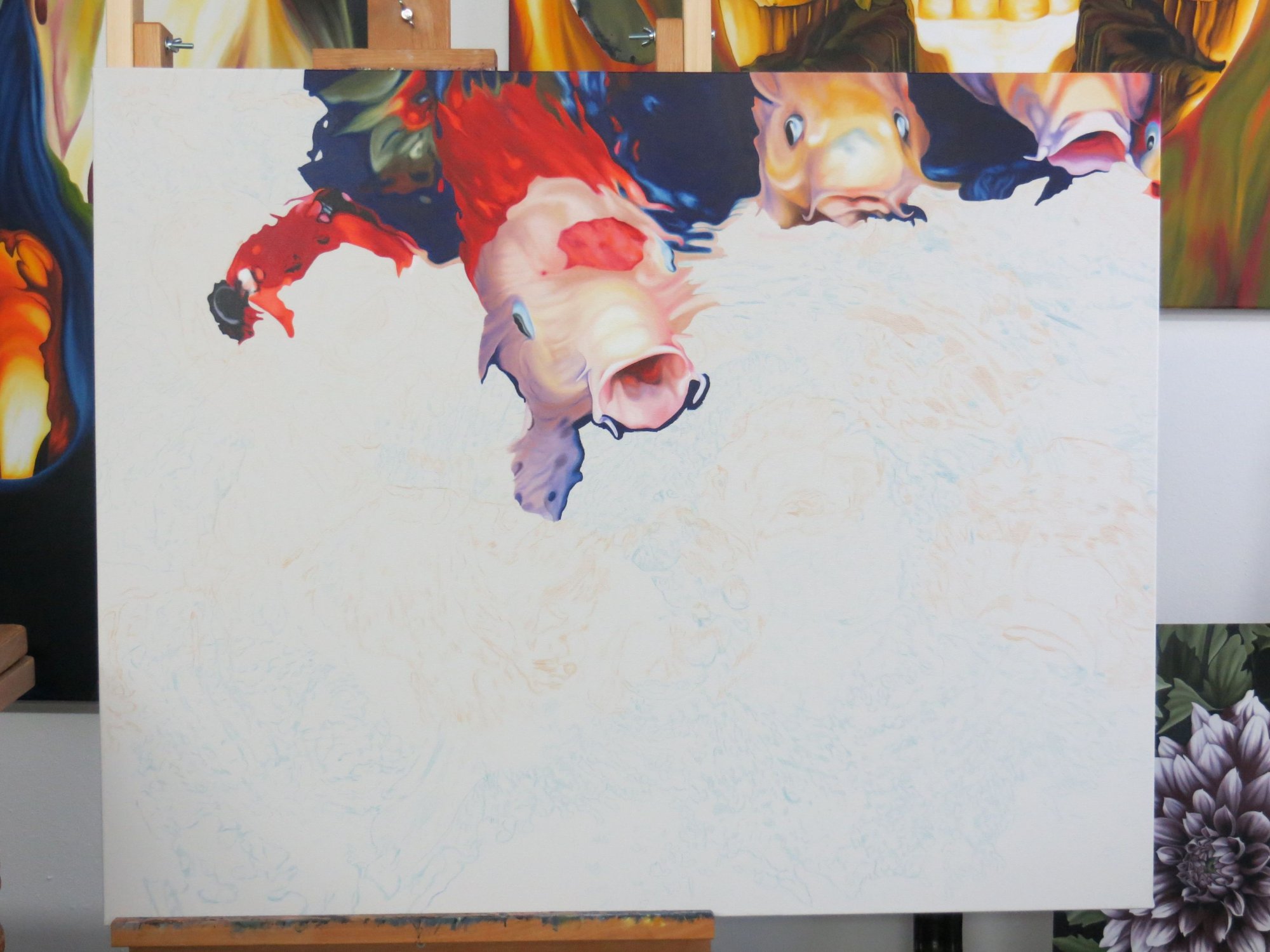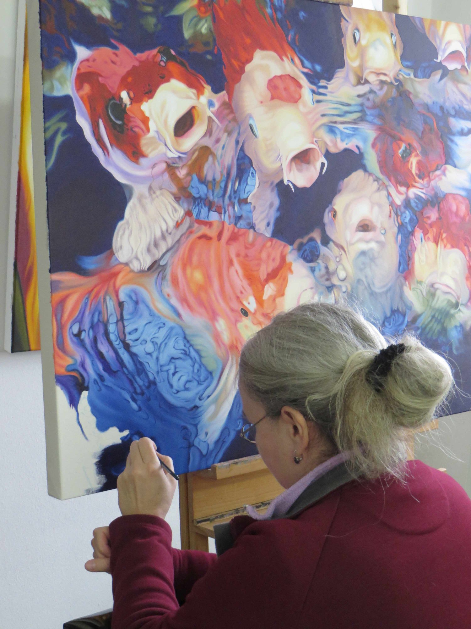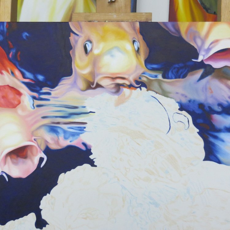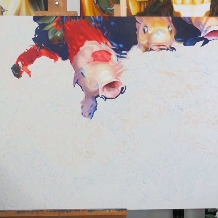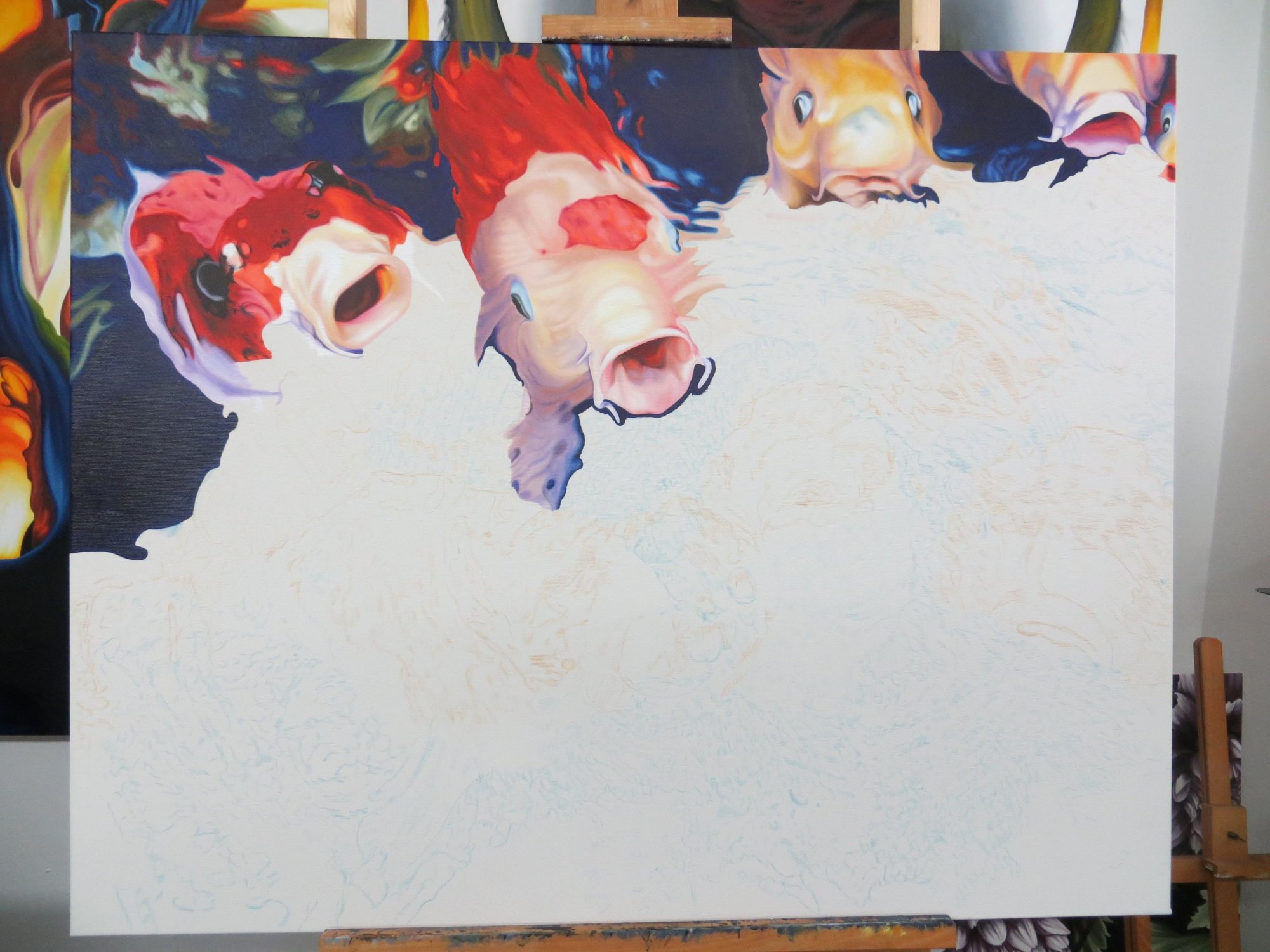 Frisch vom Pinsel: Koi #1, 2025, Öl auf Leinwand; H 80 x B 100 cm
